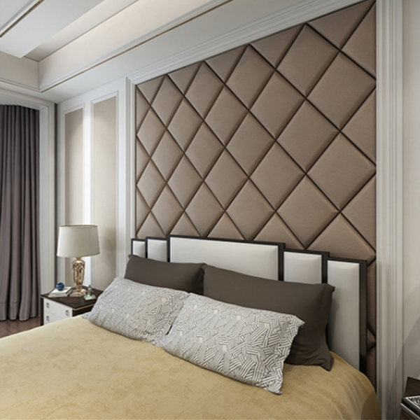 軟包背景墻向上延伸至天花板,視覺效果得以拓展,裝飾性更為突出。